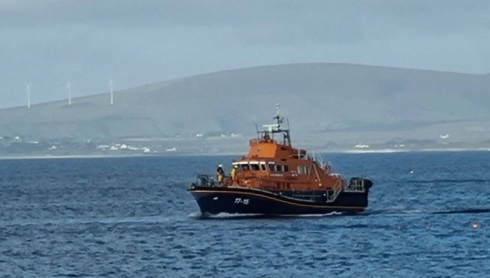 The all-weather Severn class lifeboat was launched under Coxswain Francie Gibbons and with mechanic Stephen Togher, crew Hughie Carlin, Patrick Coyne and Sean Reilly onboard, while the inshore D class lifeboat was helmed by Alan Murray with Francis Dixon and Matthew Togher onboard.