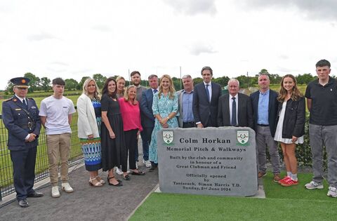 The Taoiseach’s speech captured the mood perfectly on what was a joyous, if poignant, occasion with the town and surrounding communities turning out in big numbers to support and help out in any way they could. Mr Harris received a super round of applause for his touching and warm delivery with local parish priest Fr Tommy Johnson blessing the special monument erected to mark the new pitch and walkway.