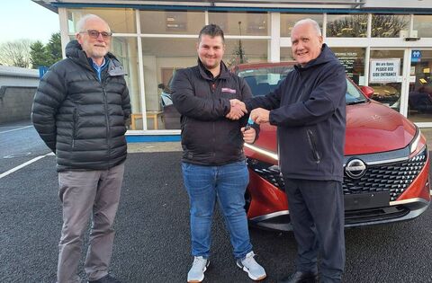 Josh Howard from Claremorris has been presented with the keys to a new 2026 Nissan Qashqai - top prize in the Federation of Victim Assistance draw that was held in Kiltimagh before Christmas. The handover took place at Cleary’s Garage, Main Nissan Dealers, in Kiltimagh, with Tom Brophy, Chairperson of the Kiltimagh-based charity, alongside Paul Cleary of Cleary’s Garage.