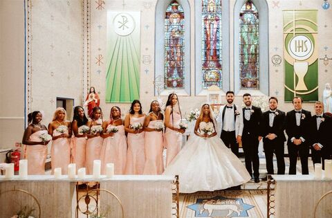 The wedding party included Maid of Honour Anna Ndiwera, bridesmaids Abby Mubea (sister of the bride), Christelle Da Gama, Debbie Emmanuel, Tracy Nakawooya, Gloria Nankya, Tvesha Patil, Renike Sonuyi and Sabrina Souza, Best Man Kevin Armstrong (brother of the groom), groomsmen Trevor Crawley, Aaron Hanlon, Padraig Murphy and Shane Quinn.