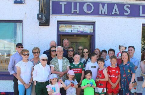Descendants of the Lyons family are pictured in Roundfort recently for the 150th-anniversary celebration of the local Lyons' Pub. Picture: Trish Forde