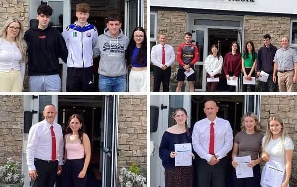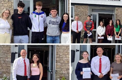 Pictures from students picking up their Leaving Cert results at Saint Brendan's College, Belmullet, last Friday:
