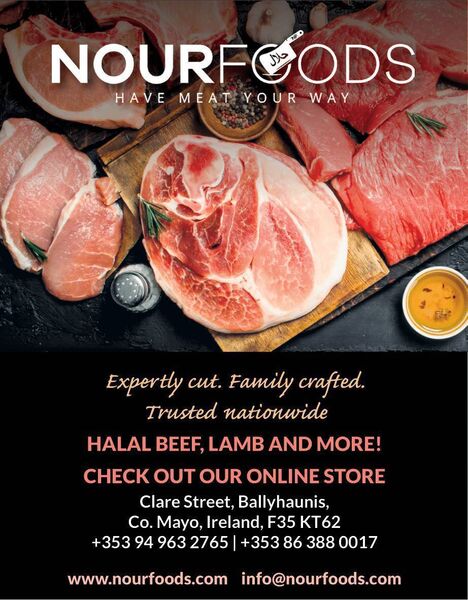 For orders and enquiries, you can contact Nourfoods by email at info@nourfoods.com or by phone on 094 963 2765. They are based in Ballyhaunis, Co. Mayo, and you can explore their full range of premium Halal meats online at www.nourfoods.com.