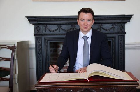 Ballina-based Fine Gael Senator Mark Duffy signs the register on his first day in Seanad Éireann.