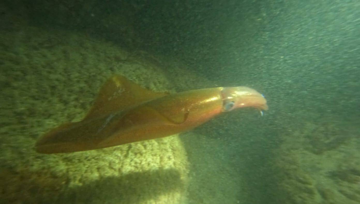 Known for its reddish-brown colouring and large, graceful fins, this squid is usually found in deeper offshore waters, making this a truly unusual inshore sighting.
