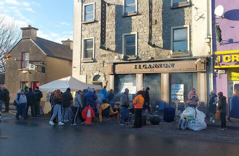 A protest outside JJ Gannon's Hotel on Main Street, Ballinrobe today.