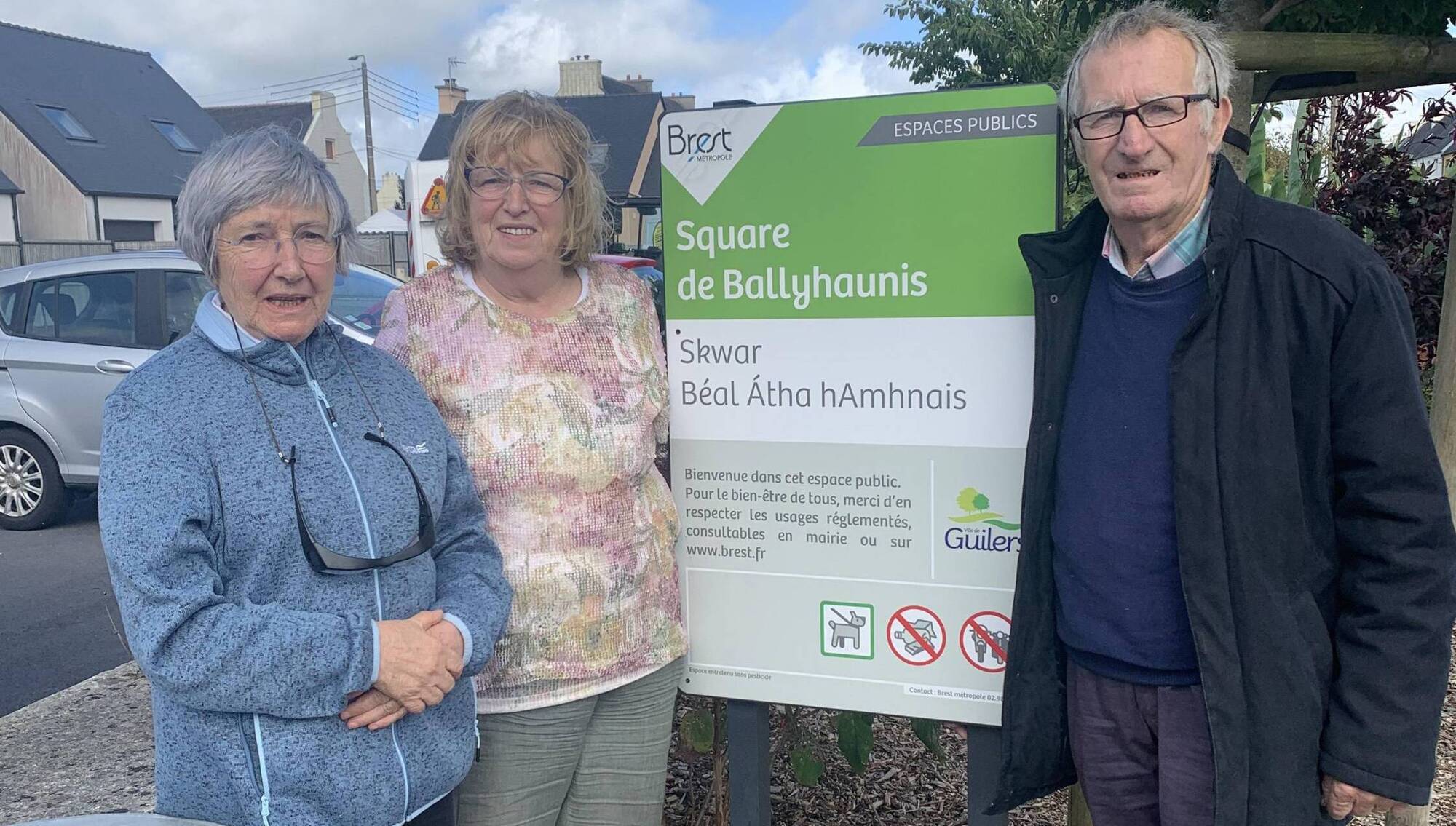 Rena and Tom Burke with Marie Therese Floch at the Square de Ballyhaunis in Guilers.