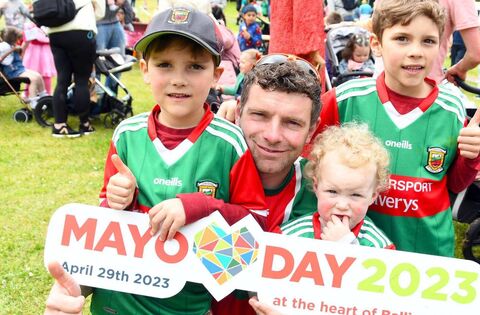 Mayo Day proved a huge success last year when it was held in Ballina to coincide with the town's 300th-anniversary celebrations. Enjoying Mayo Day 2023 in Tom Ruane Park were Fionn, Mike, Saoirse and Cathal Grufferty from Castlebar. Picture: John O'Grady