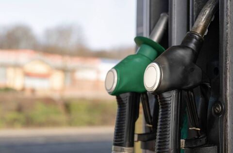 Modern gas station with diesel and petrol nozzles, capturing the essence of fuel supply for everyday travel and convenience