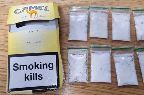 A vehicle was also stopped and following a search, eight deals of suspected cocaine were recovered concealed in a cigarette box (see pictured).