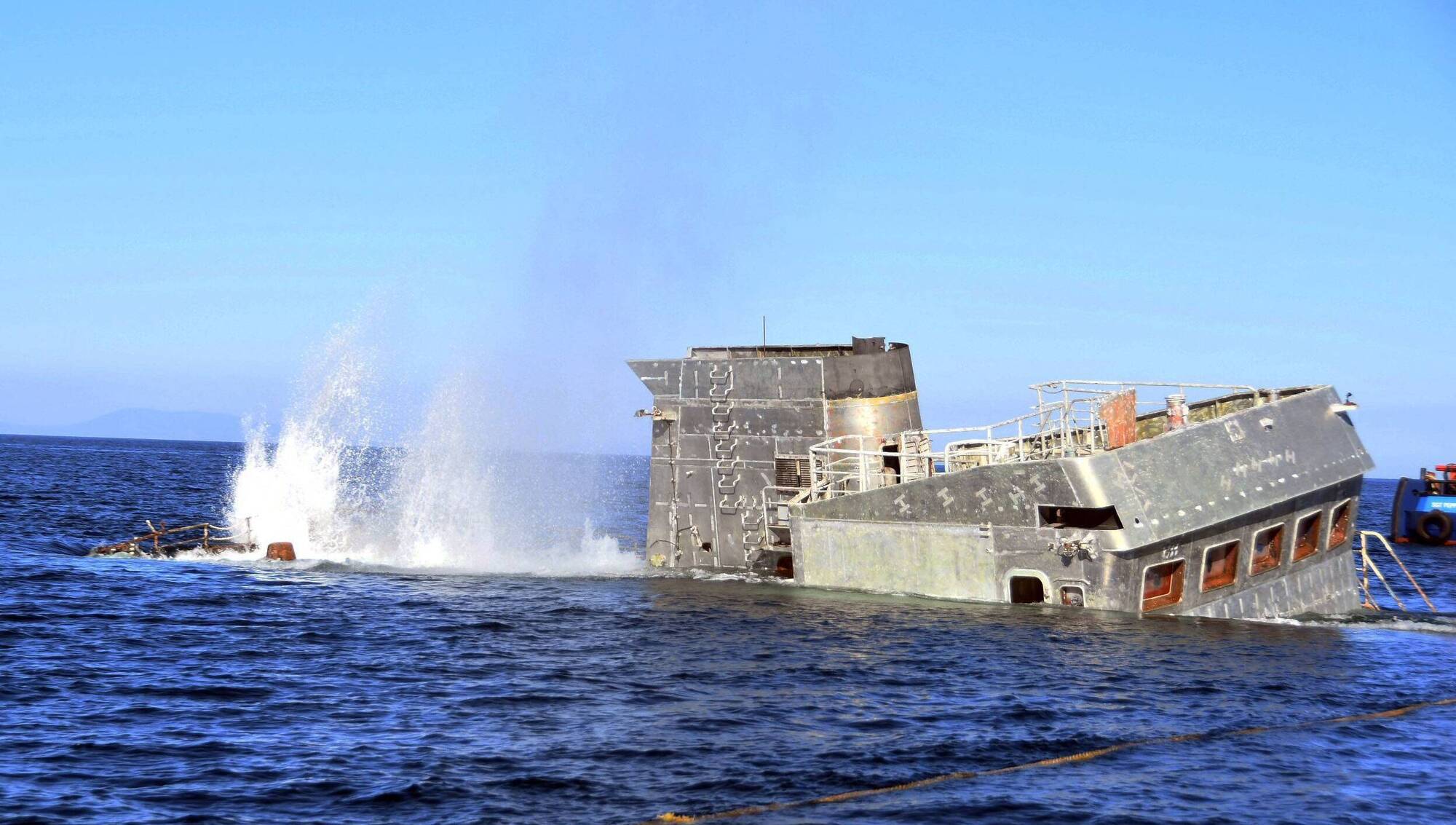 The ship departed New Ross, where it had been in situ in the dry dock for a number of years, last Sunday week and arrived on site in Killala Bay for the sinking on Wednesday. The valves were opened on the ship around 3pm and it sank 25m-30m below the surface of the water just after 4pm.