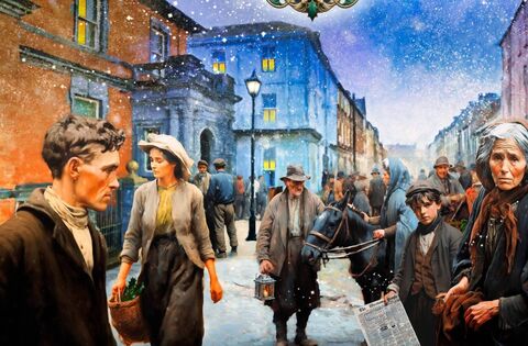 Conor McGuire's wonderful illustration of Pearse Street in Ballina a century ago, which featured on the front cover of the Western Star 2023.