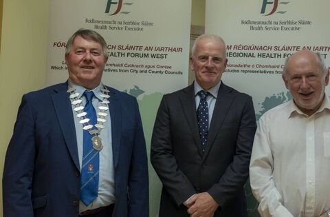Pictured at last week's annual general meeting were, from left: Cllr Gerry McMonagle, Chair of the Regional Health Forum with Tony Canavan, Regional Executive Officer, HSE West and North West and Executive Chair of the Regional Health Forum West and Cllr Michael Kilcoyne, Vice-Chair of the Regional Health Forum West.