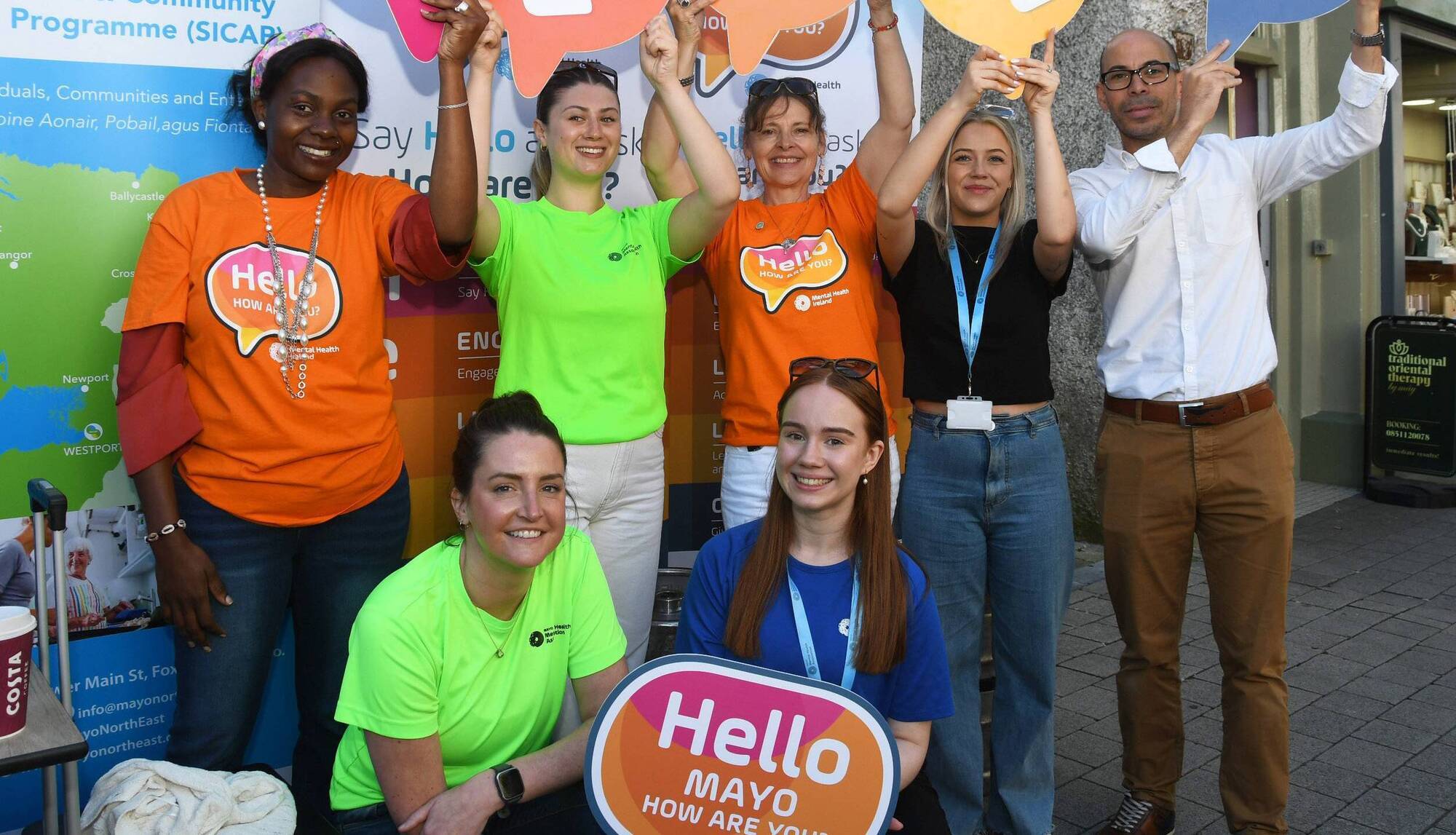 Earlier this year, Ballina hosted the 'Hello, How Are You?' national mental health campaign, which has now led to a local group of volunteers launching the Hello Café in Costa Coffee at Pearse Street in Ballina. Pictured are Mayo Mental Health staff at the 'Hello, How Are You' initiative last May. Picture: John O'Grady