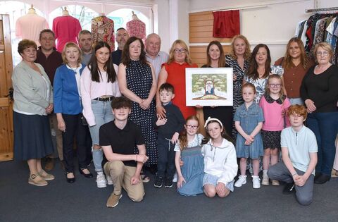 Members of the Meehan family hold a a photograph of their beloved Ann at the unveiling of the memorial plaque in Swinford Hospice shop. Picture: Conor McKeown