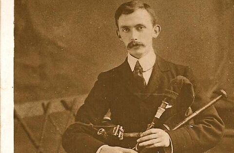 Eamonn Ceannt pictured with his Uileann Pipes