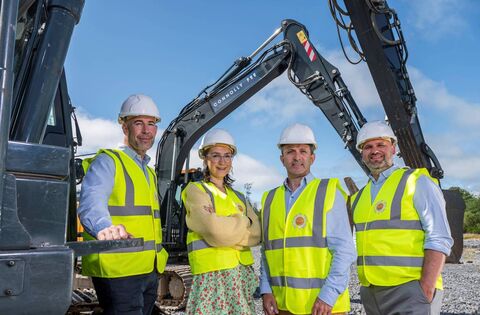 Pictured on site ahead of the start of construction of Daisy Lodge on the shores of Lough Corrib in Cong recently were, from left: Shane Connolly, Director at Connolly and Fee Ltd.; Vanessa Matczak, Young Ambassador for Cancer Fund for Children; Darren McCormack, Estates Manager at HSE West and Phil Alexander, CEO of Cancer Fund for Children.