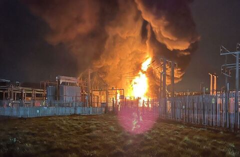 Handout photo supplied by London Fire Brigade showing a fire at Hayes electrical substation.