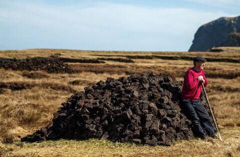 Seamus Murphy taking a break from turf cutting in Kilgalligan in North Mayo in 2020. Picture: INPHO/James Crombie
