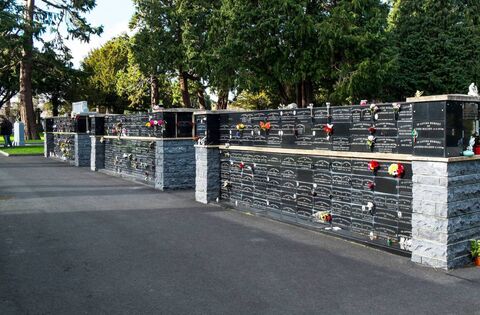 A columbarium consists of a wall with designated niches into which urns containing the cremated remains of loved ones can be placed.
