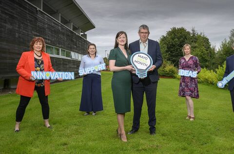 Pictured at the launch of Mayo Ideas Month 2023 were, from left: Margaret Charleton (Enterprise Ireland), Michelle Lee (ATU iHub Mayo), Sabina Trench (SWMDC), Seamus McCormack (WestBIC), Eleanor Hussey (LEO Mayo), and John Magee (LEO Mayo). Picture: Michael McLaughlin