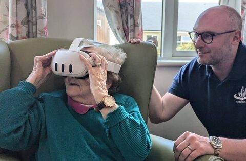 Brian Lavelle with a care home resident testing out the Virtual Reality headset.