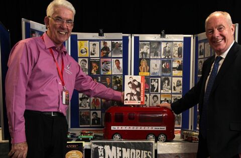 Pictured at the 50th anniversary of Claremorris Town Hall was the then Minister for Rural and Community Development Michael Ring with Philip Darcy and his Showband memorabilia exhibition. Picture: Trish Forde
