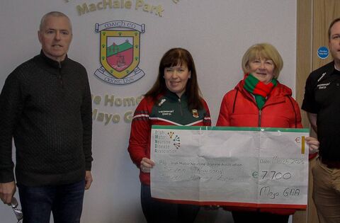 The Mayo branch of the Irish Motor Neurone Disease (MND) Association, a charity partner for Mayo GAA, have been presented a cheque for €7,700 by the Mayo GAA County Board.