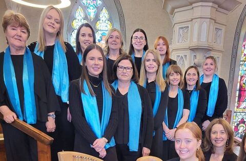 Back row: Mary Walsh, Joanne McGowan, Kathy-Ann Fox, Eimear Thornton, Mary Gilvarry, Katya Harrison. Front row: TaraCafferty, Marie Gilvarry, Caroline Jackson, Charlotte Murphy, Stacey Mattimoeand Claire Fox, Aoife Sherry (organist and harpist), Edel Sherry (flautist) and Regina Deacy (director). Missing from pic is Siobhan Keane and Ellen Fair.