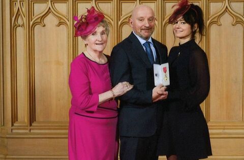 Dr Martin Walsh pictured with his mother Carmel Quinn and wife Dr Emanuela Floravanti, following his OBE award.