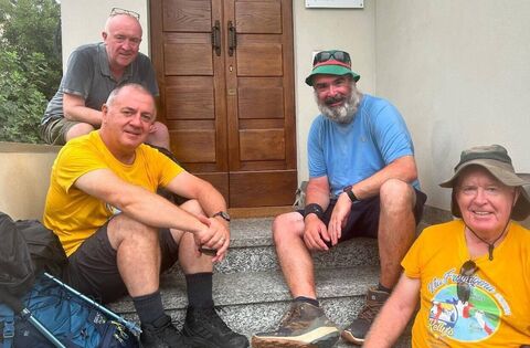 John Culhane, Noel Smith, Joe Mellett and Cathal Kelly in Fiorenzuola d'Arda along the Via Francigena in Italy.
