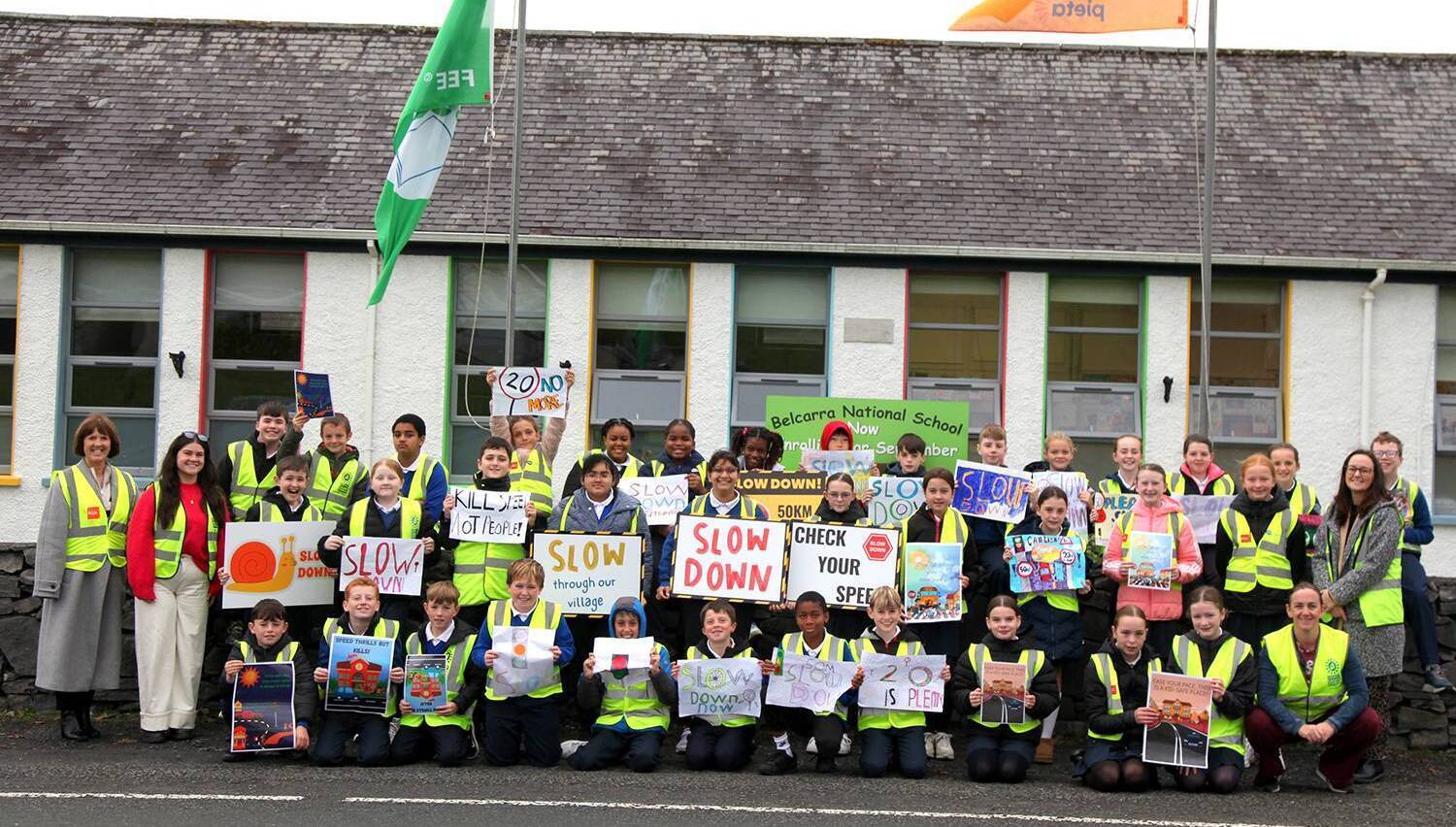 Garda Olive Lafferty, from Community Policing in Castlebar and a parent of pupils in the school, said: “We fully support the efforts of the pupils of Belcarra. Speeding through villages puts lives at risk, especially children walking to and from school. We are asking all motorists to slow down and drive responsibly.”