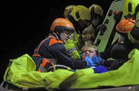 Mayo Fire Service conducted a live demonstration of extracting an injured person from a crashed vehicle.