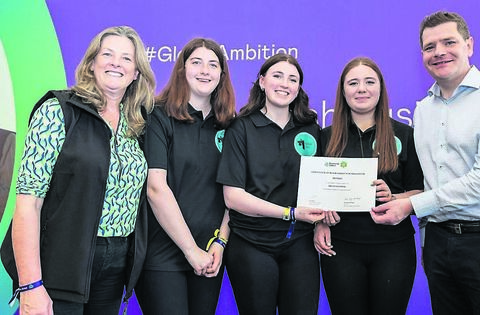 Carol Gibbons, Divisional Manager and Head of Regions and Local Enterprise, with Enterprise Ireland, Aoibhinn Mangan, Mary Lillibeth Curry-Glynn and Katie Jennings, all of HerdSync, with Peter Burke TD, Minister for Enterprise, Trade and Employment, at the Enterprise Ireland Innovation Arena Finals, at the National Ploughing Championships.