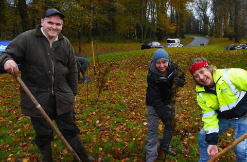 Volunteers from the local Ballina Community Clean-up Group taking part in a tree planting ceremony in Mount Falcon Estate last October, from left: Damien Barrett, Arlene Walsh and Martin Devaney. Picture: John O'Grady