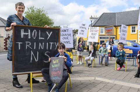 Pupils from Holy Trinity NS in Westport staged a protest at The Octagon in 2020 in pursuit of a new school.