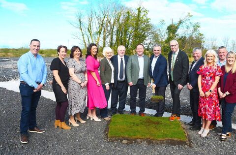 Pictured at the sod-turning ceremony for Kilglass Community Centre were, from left: Kevin Bourke, Fidelma Stars, Joanna Campion, Louise McDonnell (Chairperson, Kilglass Community Centre), Minister Marian Harkin, Eamonn Scanlon TD, Declan Hallinan, Hallquar Engineering Services Ltd; Minister Dara Calleary TD, Cllr Donal Gilroy, Cathaoirleach of Sligo County Council; Cllr Joe Queenan, Sinead Jones, Colin Lynott, Amanda McCloat and Caroline Gilroy. Picture: John O'Grady