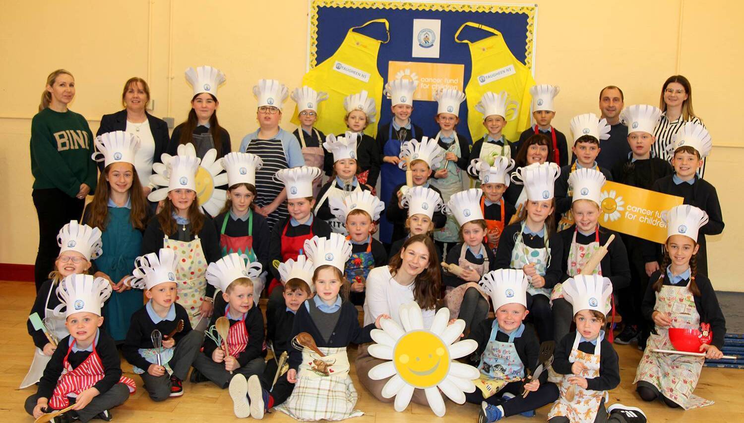 Kitted out in chefs hats, aprons and wooden spoons, the children of Taugheen National School warmly welcomed and enjoyed a visit recently from Rachel Fullam, Community Fundraising Officer with Cancer Fund for Children, which is currently constructing Daisy Lodge in Cong.