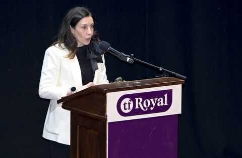 Ballina native Dr Ann Marie Courell at the podium during the general election count in the TF Royal Theatre in Castlebar. Picture: John Corless