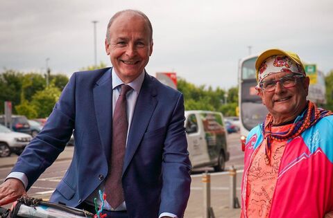 Taoiseach Micheál Martin with Timmy Mallett last month in Cork during Mallett's trip along the Wild Atlantic Way.
