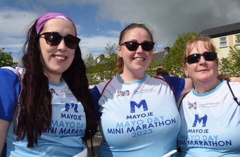 Participating in the 2023 Mayo.ie Western People Women’s Mini-Marathon in Ballina were Rachel Cunningham, Mairead Butler and Brid McGill, Castlebar and Westport. Picture: David Farrell Photography