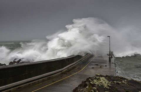 Waves crash over Roonagh pier which is to undergo eight months of remedial work this year. Picture: Michael McLaughlin