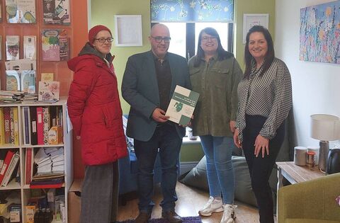 Pictured at Erris Family and Community Support Centre were, from left: Dervilia Culotty, Chris MacManus MEP, Leanne Barrett and Rosaleen Lally.