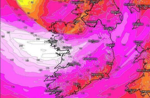 Meanwhile, popular social media weather enthusiast 'Carlow Weather' has warned that the latest HAMRONIE 6z high resolution weather model is very concerning, especially for Western areas, with gusts of 180kmh on the coast a possibility.