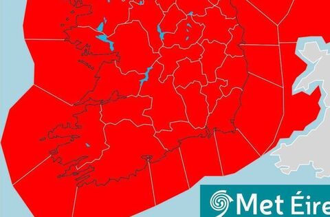 The red warning will be valid for Mayo from 4am on Friday, January 24 until midday (12pm).