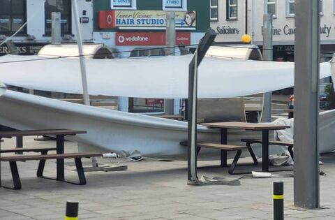 A public seating area at Market Square in Castlebar left in pieces after the storm. Council officials say a series of lessons needed to be learned following the devastation caused by Storm Eowyn.