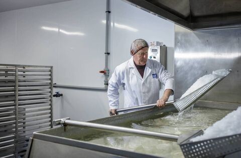 Kieran O'Malley panning salt in his company's facility in Bunnacurry, Achill.