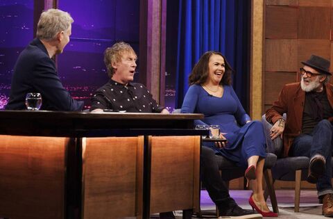 Hector Ó hEochagáin, Laurita Blewitt and Tommy Tiernan pictured with The Late Late Show's host Patrick Kielty last September. Picture: Andres Poveda