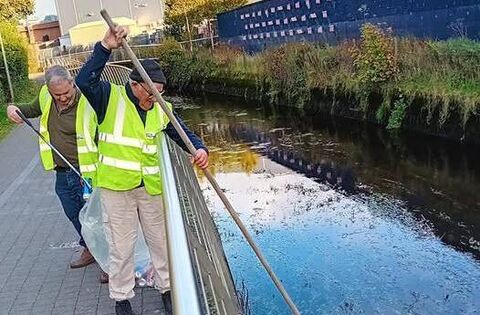 Castlebar Tidy Towns volunteers cleaning a section of the river last year.