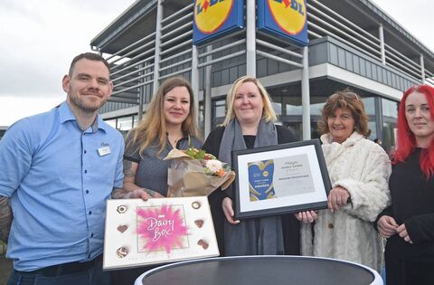 Pictured from left to right are Shane Ferry, Assistant Store Manager, Lidl Castlebar; Patrycja Piotrowska, Store Charity Champion, Lidl Castlebar; Amanda McGuinness, Mayo Lidl Family Carer of the Year 2025; Bernie Dowling, Community Support Manager, Family Carers Ireland; and Christine O’Brien Glesson.